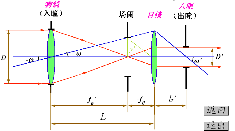通过望远镜之后,物体的像对人眼的张角就是系统的像方视场角w¢