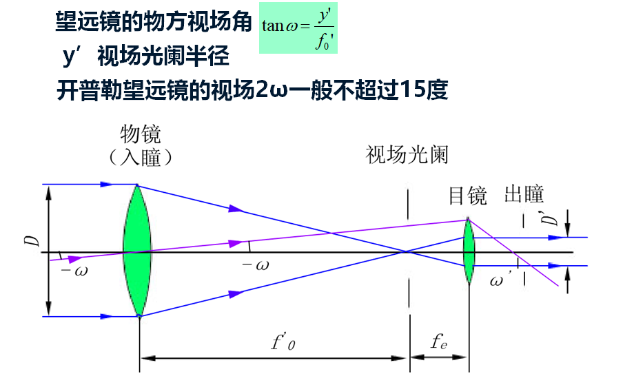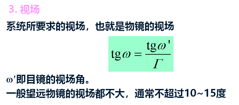 当目镜的视场 一定时,增大望远镜的视放大率必然减小整个系统的视场