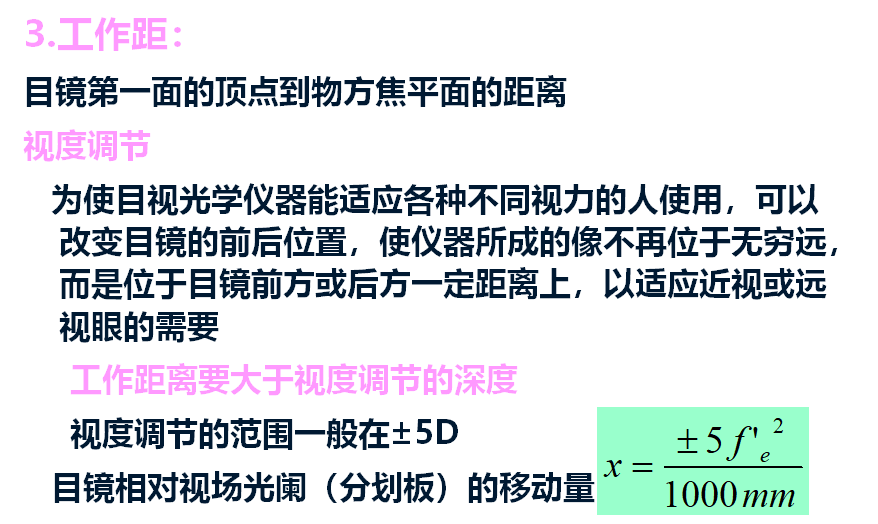 出瞳直径:出瞳位于目镜的后焦平面附近,直径一般为2-4mm