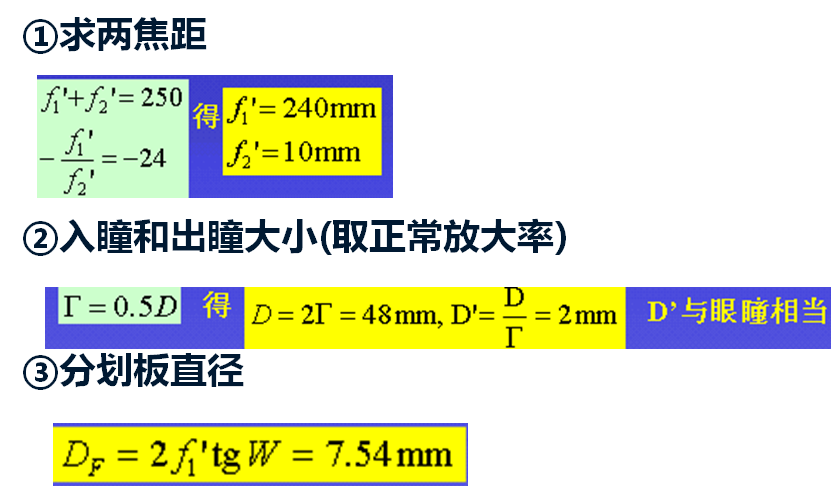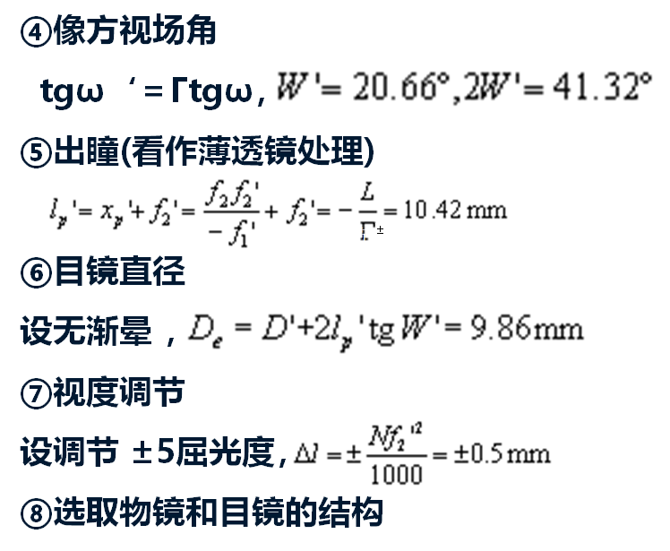注:在初步设计中不考虑像差,完全根据理想光学系统公式进行计算