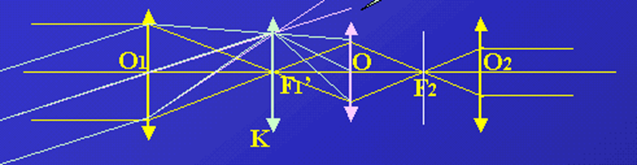 2. 透镜转像系统:在物镜的实像平面后面,使倒像再一次倒转成为正像的透镜系统。有单组和双组两种形式。