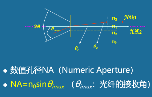 uNA(或θimax)越大,表示光纤接收光的能力越强,光源与光纤之间的耦合效率越高。
