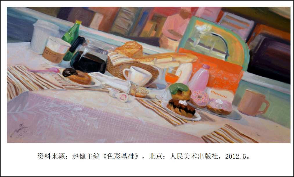 油画创作教学所涉及的问题较为复杂,包含的绘画因素比较广泛,因此,对于一年级油画静物创作练习课程的构图部分,以培养学生对构图的含义、普遍构图原则、构图需要注意的概念,不同视角的构图形式和不同画幅的构图形式是本课程教学的重要任务之一。