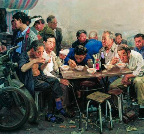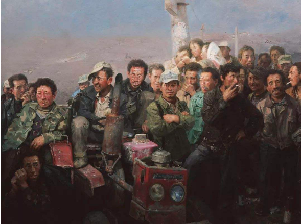 忻东旺的油画具备强烈的人性关怀,表现了进入城市的农民对于生存的欲望,这是合乎人性的合理的欲望。黑格尔认为人的“恶”作为一种对财富与名声的追求,也是历史发展的动力。从这里可以推导出现代社会追求合理利益的个人主义是社会发展的基本动力,正如古代社会“穷且益坚,不坠青云之志”的理想主义精神,也是种社会发展的动力。忻东旺不再描绘农民对于现实生活的简单满足,而是通过不同的环境描绘与人物塑造,反映了农民进入大型城市、规则社会后所产生的那种不适应与困惑。