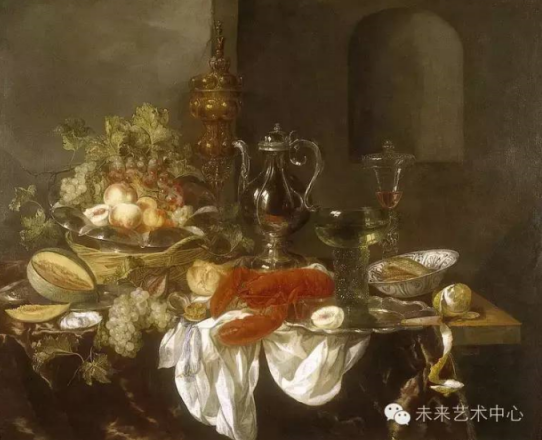 17世纪后半叶,荷兰静物化在保留斜线结构的同时,也有了明显的变化,画面上出现越来越多的奢侈品,达到了一种夸张的效果。