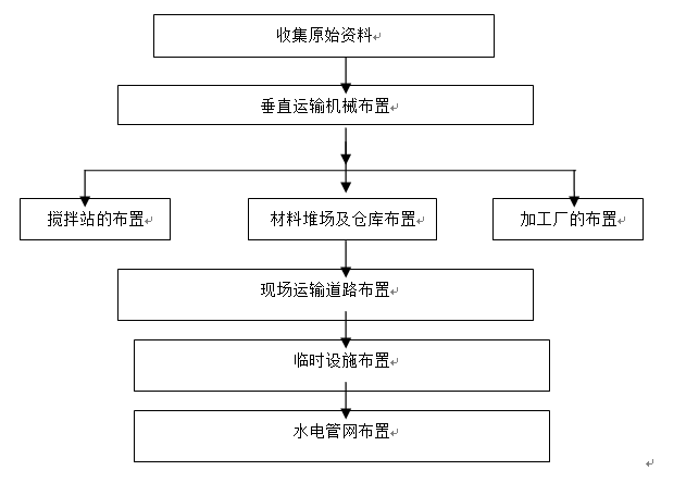2.合理布置施工现场的运输道路及各种材料堆场、加工厂、仓库位置、各种机具的位置;尽量使得运距最短,从而减少或避免二次搬运。
