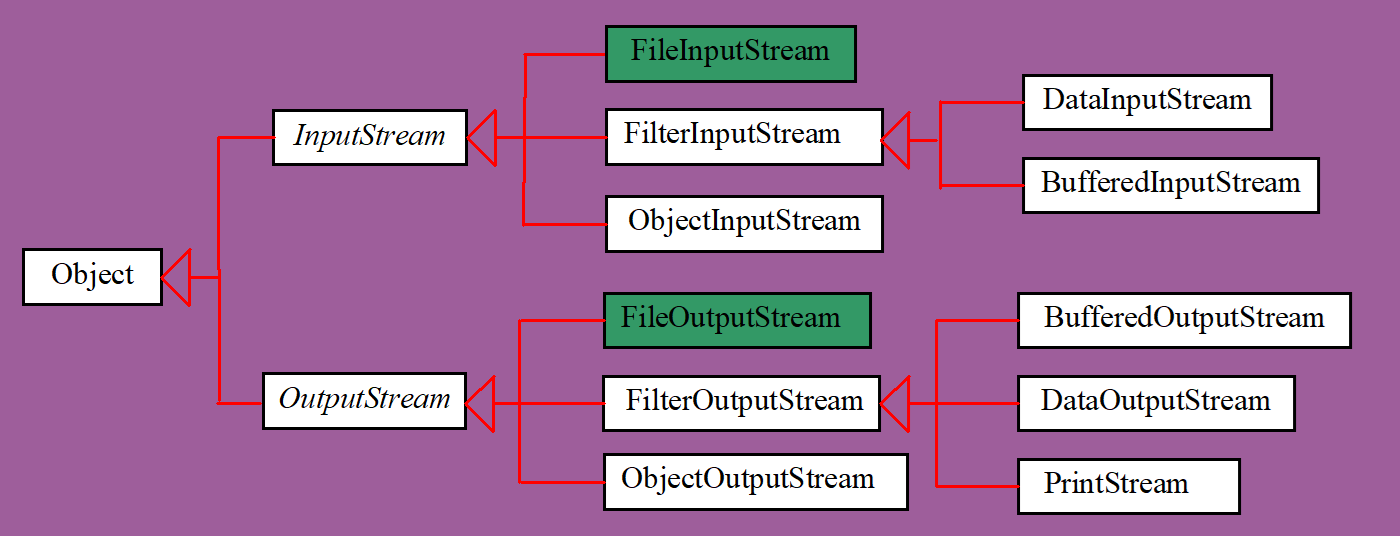 FilterInputStream是对InputStream的扩展,增加了特定功能,例如DataInputStream增加了readInt()、readDouble()等方法,可以读取指定基础数据类型的数据;BufferedInputStream实现了缓存读取,减少磁盘I/O操作频率,提高效率,具体用法请查Java API。