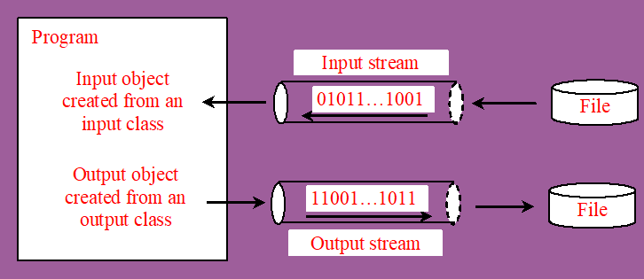 A File object encapsulates the properties of a file or a path, but does not contain the methods for reading/writing data from/to a file. In order to perform I/O, you need to create objects using appropriate Java I/O classes. 在Java中将外部数据读入内存或将内存数据保存到外部文件, 需要创建专门的I/O操作对象,最核心的类为输入输出流(InputStream和OutputStream),可以看做在内存和外部存储间建立了一个管道,将数据一个byte一个byte的输入或输出到目标位置。