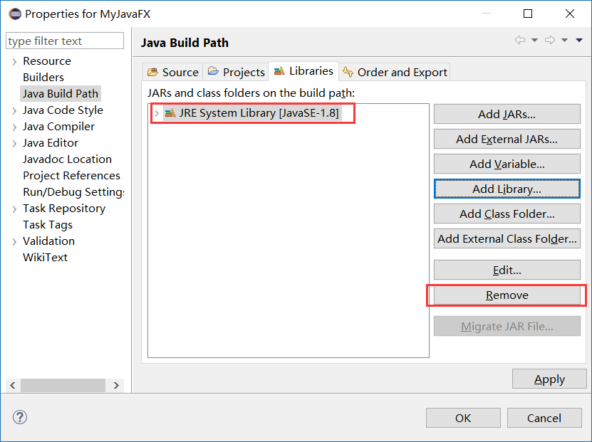 (1). Properties -> Java Build Path:删除Eclipse默认的JRE