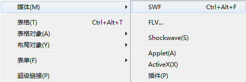 网页中常用的多媒体对象主要分为Flash 类(Flash 影片、Flash 按钮和Flash 文本)、Java Applet、ActiveX 控件类,以及各种音频、视频文件,如图8-14 所示。