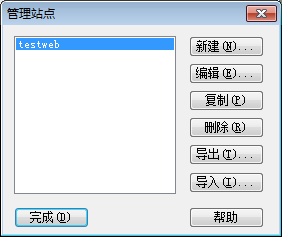 (2) 在“管理站点”对话框中,显示了刚刚新建的站点,单击“完成”按钮。