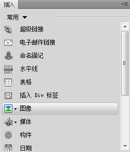 (1) 把插入点置于文档窗口中要插入图像的位置,然后选择主菜单中的“插入”→ “图像”,或单击“插入”栏中“常用”类别的“图像”按钮,如图8-11 所示。