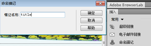 将鼠标定位到想要命名锚记的位置,单击“插入”工具栏中的“常用”→“命名锚记”。