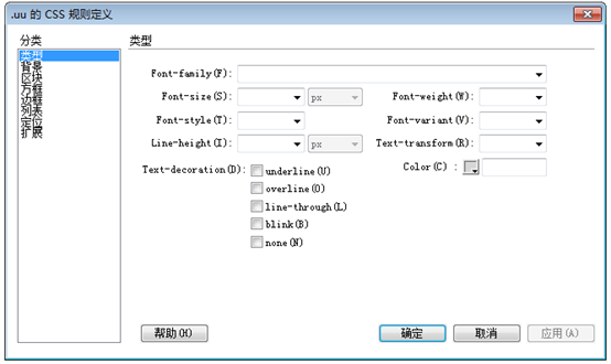 3)弹出“CSS规则定义”对话框,在“分类”列表中,选择各项进行设置,单击“确定”按钮。