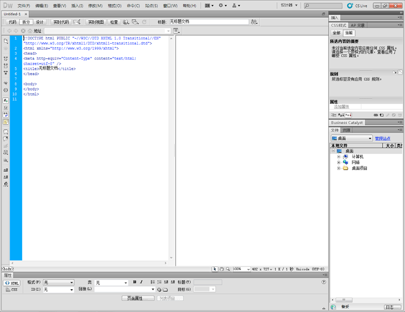 Dreamweaver 工作区使您可以查看文档和对象属性。工作区还将许多常用操作放置于工具栏中,使您可以快速更改文档。