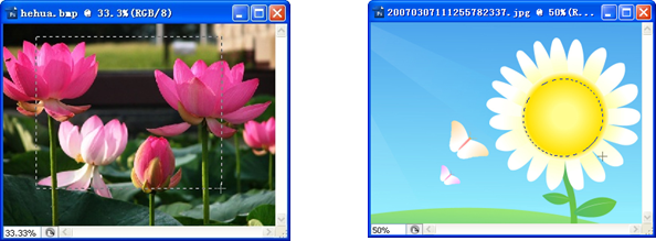 选择矩形选框工具或椭圆选框工具后,将光标移至图像窗口中,按下鼠标左键并拖动,至合适大小时释放鼠标即可绘制矩形或椭圆选区。