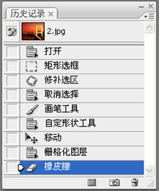 如果撤销了某些步骤,而且还未执行其他操作,则还可恢复被撤销的步骤,此时只需在“历史记录”调板中的操作步骤区单击要恢复的操作步骤即可。