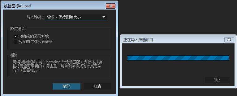 2.打开AE,将photoshop文件导入到AE中,并选择合成——保持图层大小。