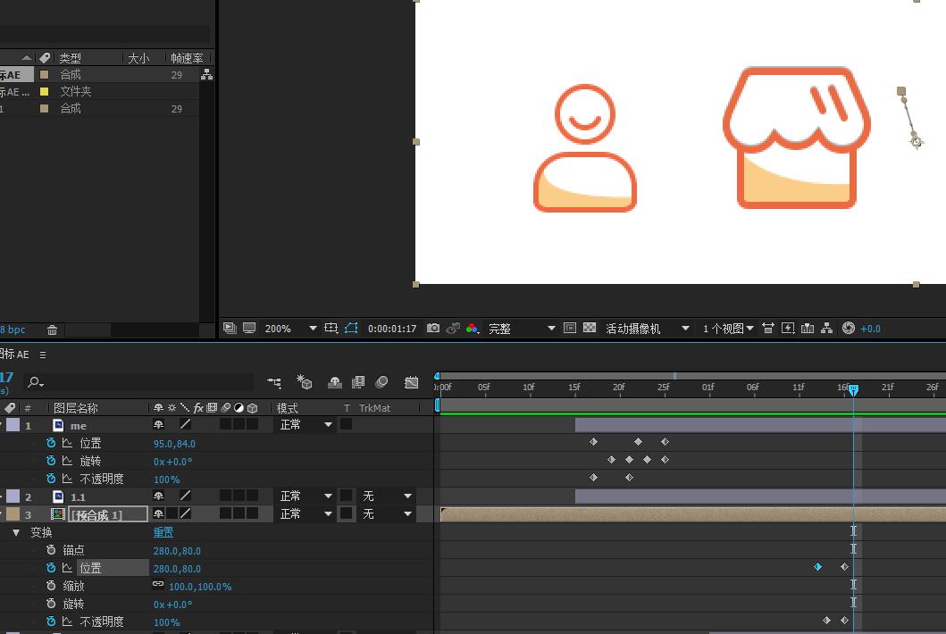 18.复制粘贴前一个图标的关键帧。