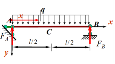 如图所示一简支梁,梁的跨度为l,梁上作用均布荷载荷载集度为q,试求跨中截面C的挠度yC和A截面的转角θA 。