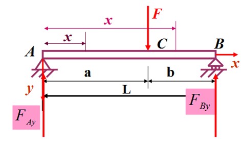 一简支梁,在C处作用一个集中力。试求梁的挠曲线方程及转角方程以及A、B截面的转角。