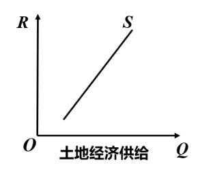 从某行业的角度来看土地供给,土地的供给量会随着地租水平的变化而发生变化,土地的供给曲线是一条向右上方倾斜的曲线(经济供给)。