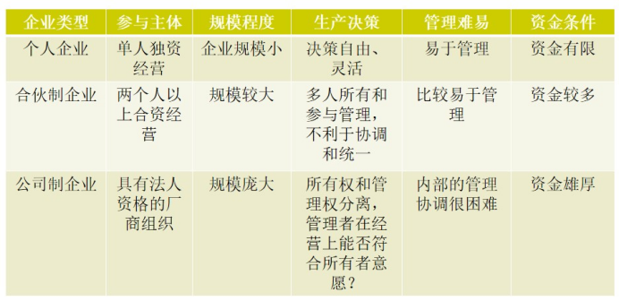我们首先要弄清组织厂商有哪些形式,按所有者的多少和所负责任的大小,可以分为以下几种组织形式: