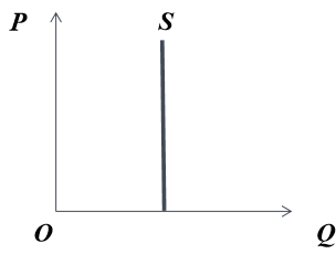 在这种情况下,无论商品的价格多高,生产者提供既定数量的商品。一般而言,具有固定数量的商品,其供给曲线具有类似的形状。