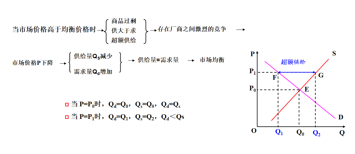 当市场价格偏离均衡价格时,市场上就会出现超额需求或者超额供给的不均衡状态。经济学把供求随价格变动而自动趋向均衡的情形看成是市场机制的自发调节。