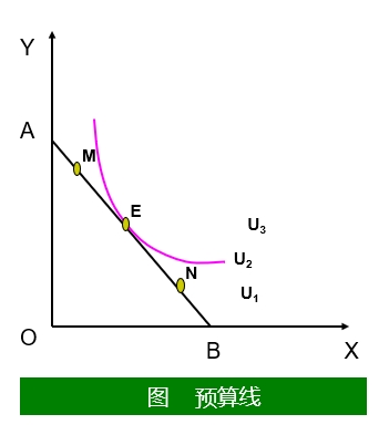 无差异曲线表明各种商品为消费者提供的各种满足水平。但在现实中,任何消费者在购买商品时总要受到一定收入水平和一定价格水平的限制。由此,序数效用论者在分析消费者行为时,又建立了消费者的预算线。