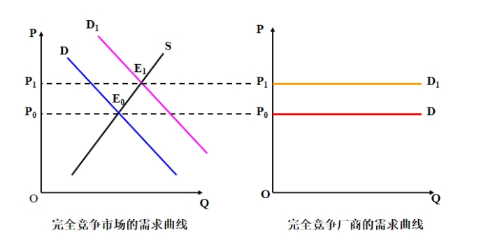 完全竞争厂商所面临的价格水平是由市场决定,当整个市场供求状况发生变化,市场价格也会随着变化,厂商所面临的需求曲线也随之变化。即完全竞争厂商所面临的需求曲线随着市场价格的变化而变化