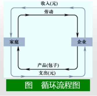 ①图中有两层循环,里面的循环代表包子和劳动的流动(实物流);图中外面的循环代表相应的货币流向。