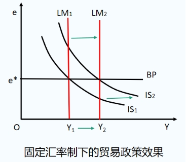 固定汇率制下的贸易政策的经济机制,同固定汇率制下的财政政策机制是一样的。不同的仅仅是IS曲线移动的原因,贸易政策源于净出口NX的变化,财政政策源于其他因素的变化。