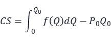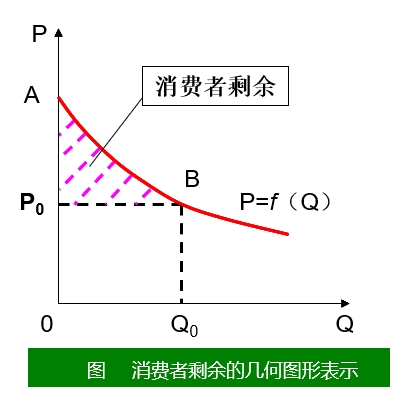 令反需求函数为P=f(Q),价格为P0时的需求量为Q0,则消费者剩余为: