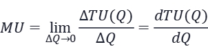 注意:式中,ΔQ表示消费数量基于Q的改变量, ΔTU则表示由此产生的效用增加量。