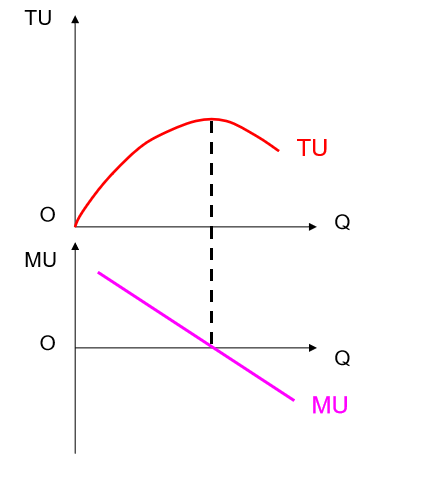 (2)边际效用等于零时,总效用达到最大,总效用曲线达到最高点;