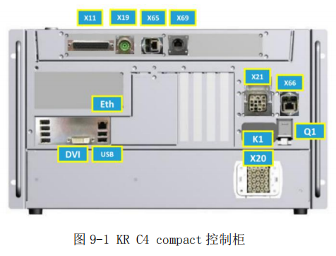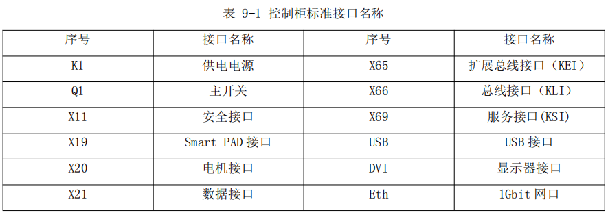 在智能制造系统中,用一台工业机器人搬运物料,要求根据设备位置示意图,完成工业机器人行走平台、搬运机器人、机器人快换夹具、信息读写台的机械部分安装。活塞加工智能制造系统的机器人单元示意图如图 7-1 所示。 在活塞加工智能制造系统中,要求你完成对基本配置 KUKA KR6-R900 工业机器人本体、KR C4 Compact 控制柜及手持操作盒编程示教器 smart PAD 的控制回路连接,以实现工业机器人的正常运行。活塞加工智能制造系统中控制柜如图 9-1 所示。控制柜标准接口名称如表9-1 所示。![]() ![]() ![]() | |