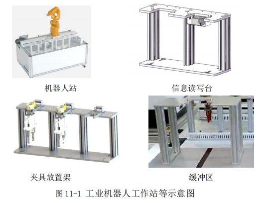 在活塞加工智能制造系统中,用库卡机器人搬运物料。机器人工作站主要由机器人台体、搬运机器人、机器人快换夹具、信息读写台及电气控制系统等组成,主要用于工件的搬运、托盘信息读写、机器人夹具更换。要求你完成机器人 KRC4 安全配置和正确的 I/O 地址配置,以实现机器人的正常操作。在活塞加工智能制造系统中,要求你完成从工件的上料、下料、信息读写搬运、检测搬运和入库搬运等工作。工业机器人站、信息读写台、夹具快换装置、数控加工中心工装夹具、缓冲区、中转检测台如图11-1 所示。 ![]() | |