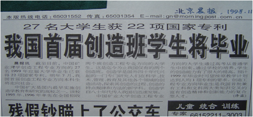 2、创造力的可开发性。例如:中国矿业大学自动化创造工程95班的学生27人毕业时共有几百项发明创造成果,22 项国家专利。