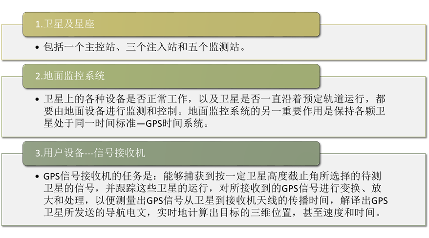 GPS的基本原理是测量也已知位置的卫星到用户接收机之间的距离,然后通过综合多颗卫星的数据,计算出接收机的具体位置。卫星的位置可以根据星载时钟所记录的时间在卫星星历中查出,而用户到卫星的距离则通过记录卫星信号传播到用户所经历的时间,再将其乘以光速得到。