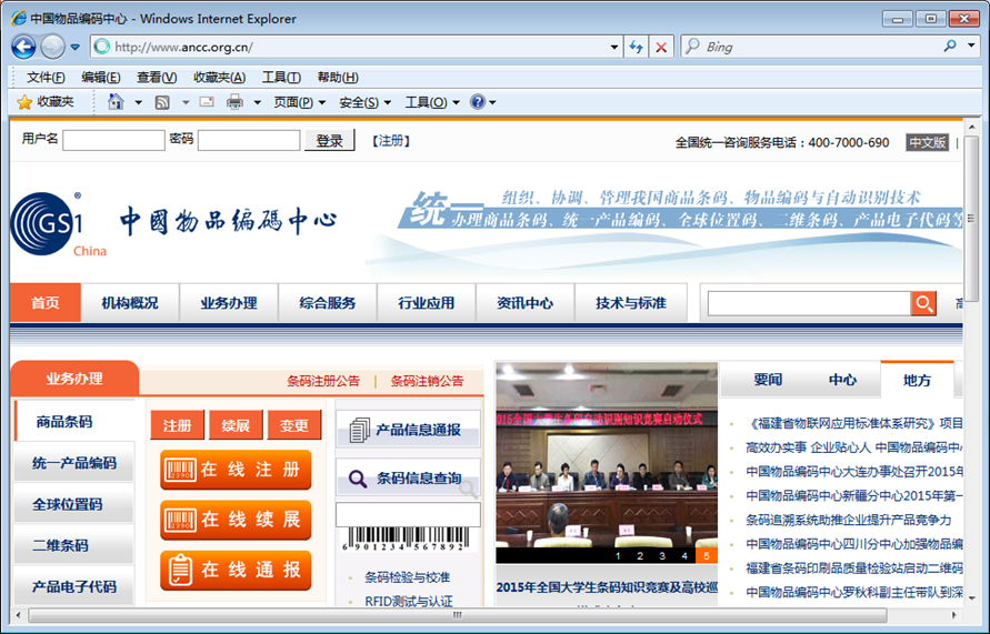 访问网站 中国物品编码中心 ,了解商品条码的注册过程,了解物品编码中心网站上还可以办理哪些其他业务?