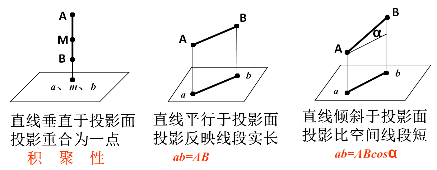 投影特性:三面投影均不反映直线的实长,也不反映直线对投影面的倾角。