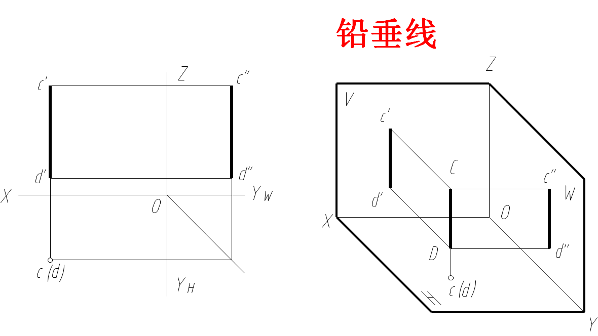 反之,点的各个投影在直线的同面投影上,则该点一定在直线上。