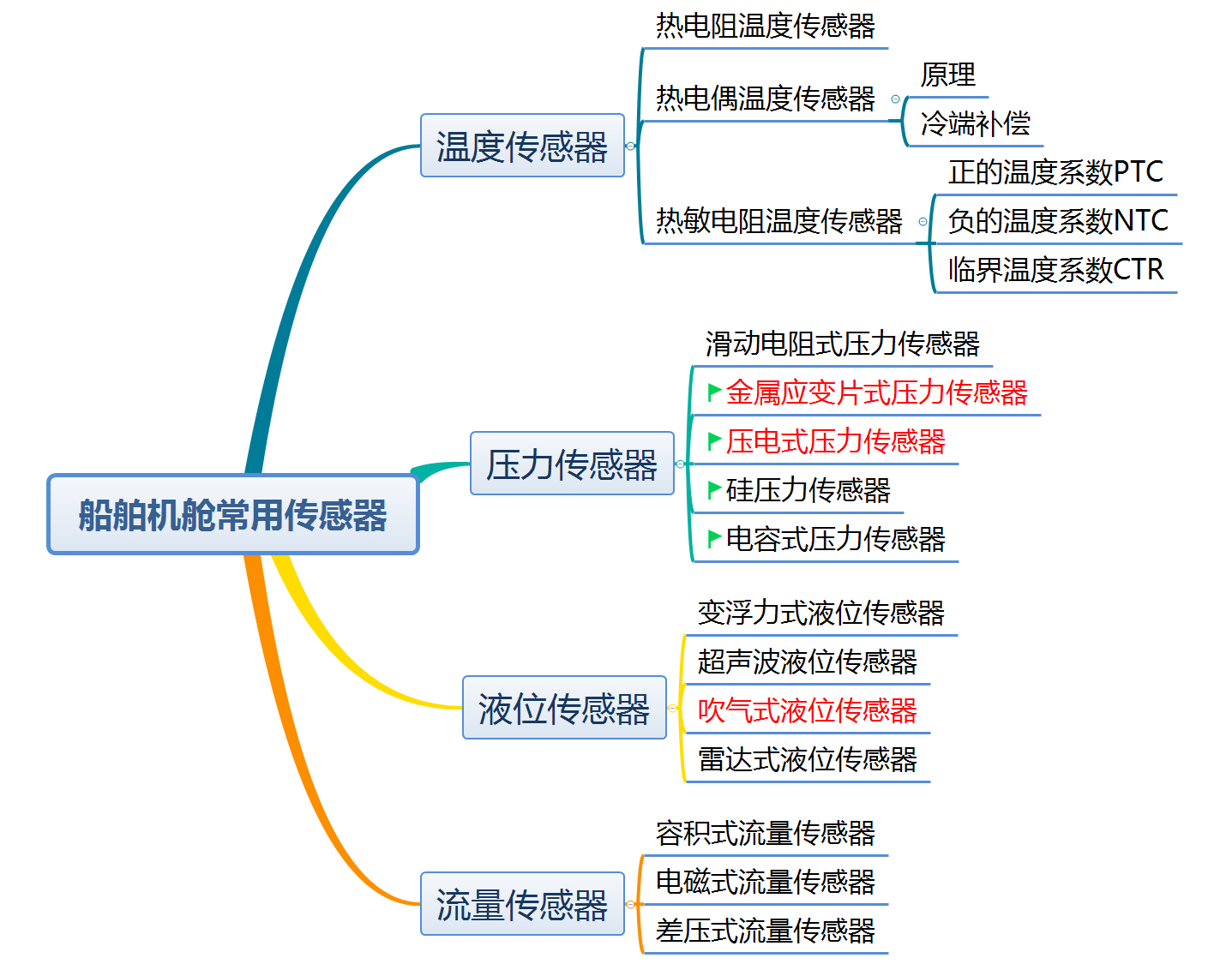 (2)小组讨论:① 机舱自动控制常用传感器有哪些?② 温度传感器的接线特点?并画图说明。
