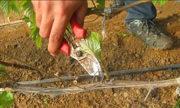 (1)双枝更新修剪 :双枝更新法多用于中、长梢修剪。双枝更新就是在结果枝组上端留一个结果母枝,下端基部留一个预备枝。上端的结果母枝按需求长度剪留,下端的预备枝留2个芽短截,次年,上端的结果母枝开花结果,而下端的预备枝则萌发2个新蔓。次年冬剪时,将已结果的果枝连同其母枝一起剪除,预备枝上的2个枝,上端的一个作为下一年的结果枝,下端的一个又作为预备枝进行修剪。以后每年均按此法修剪(也称一长一短修剪法),不断更新结果母枝。