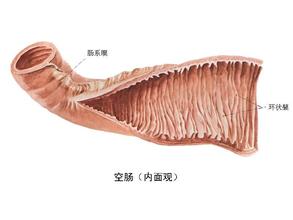 空肠和回肠盘曲于腹腔中、下部。一般而言,上2/5为空肠,占据腹腔左上部。下3/5为回肠,位于腹腔的右下部,部分位于盆腔内。空、回肠之间无明显的分界,但在形态和结构方面有差异。