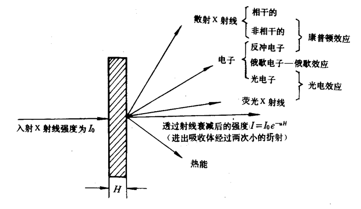 X射线通过物质时产生的光电效应和俄歇效应,使入射X射线的能量变成光电子、俄歇电子和荧光X射线的能量,使X射线强度被衰减。