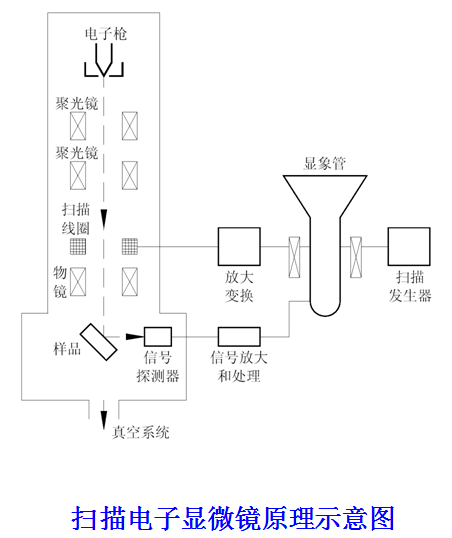 扫描电子显微镜主要由电子光学系统(镜筒)、扫描系统、信号控制放大系统、图像显示记录系统、真空系统和电源系统等部分组成。