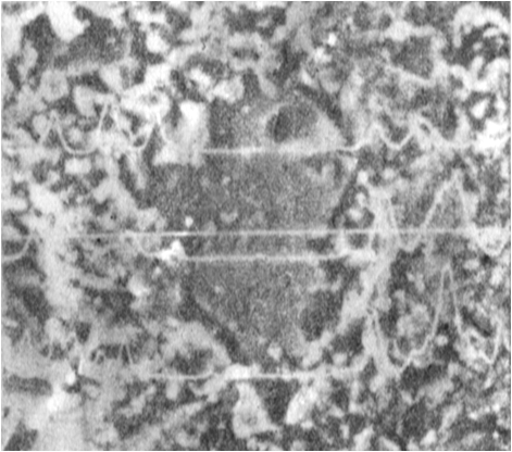 为了更加直观地反映元素含量分布与形貌、结构的关系,通常是把电子束扫描线,特征X射线强度分布曲线重叠在二次电子图像之上,如右图所示。