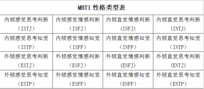 MBTI(Myers-Briggs Type Indicator)是一种迫选型、自我报告式的性格评估测试,用以衡量和描述人们在获取信息、作出决策、对待生活等方面的心理活动规律和性格类型。MBTI是根据瑞士著名心理学家卡尔·荣格(Carl Jung)的性格理论为基础形成的性格测试 。